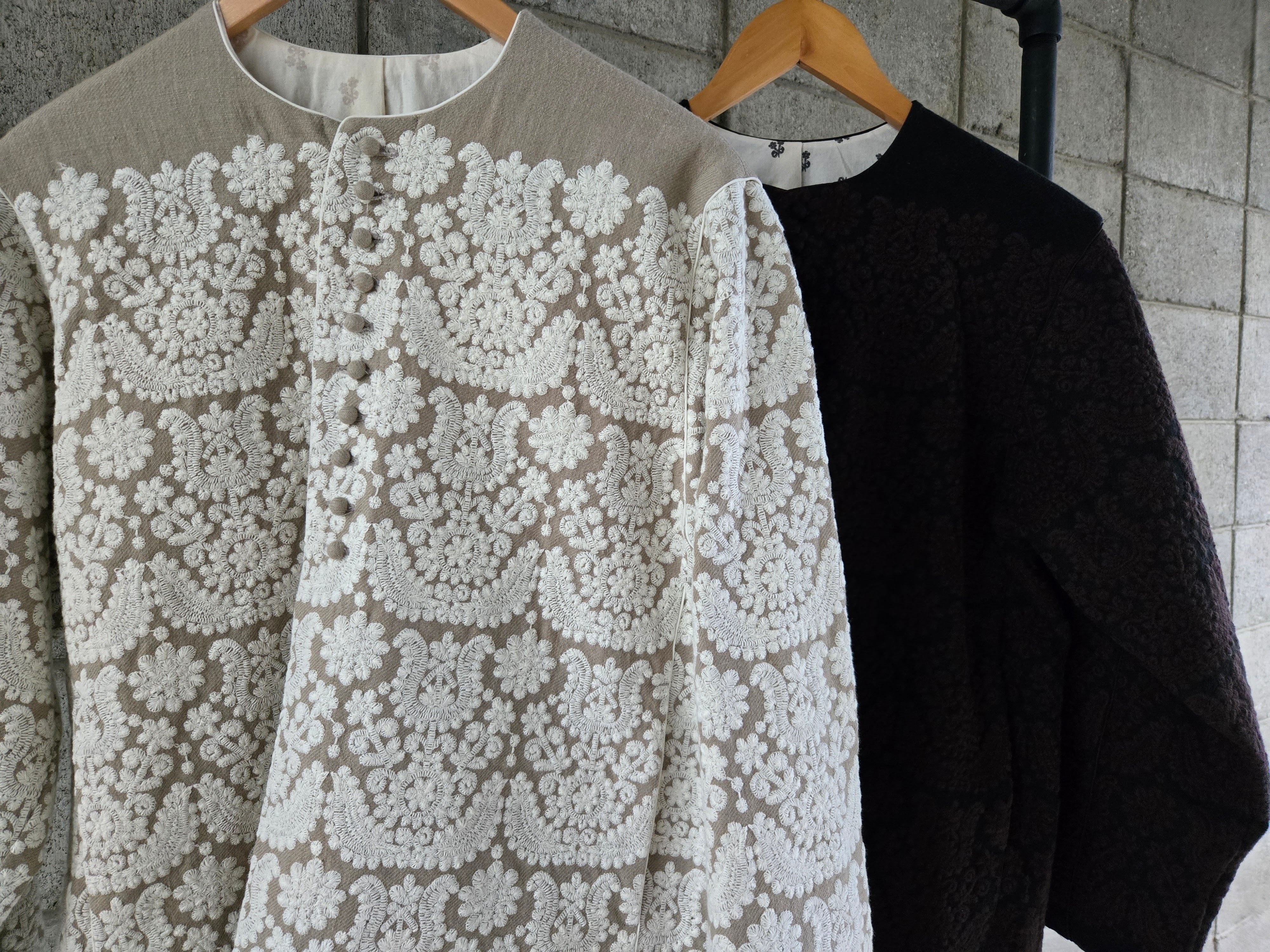 qiri / irasos embroidery ノーカラージャケット《ベージュ》