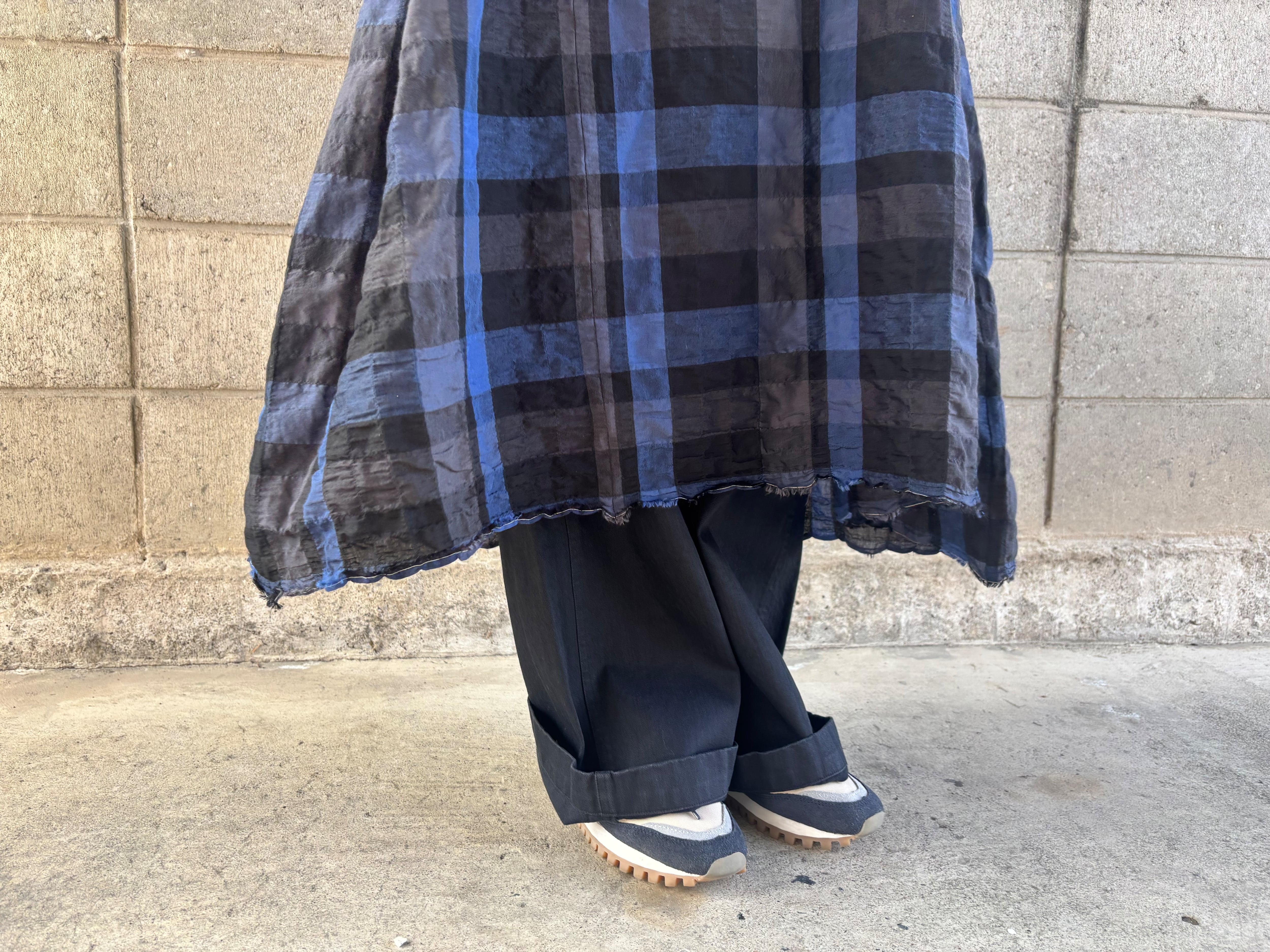 ふんわりとした凸凹とした生地が特徴のチェック柄のワンピース。